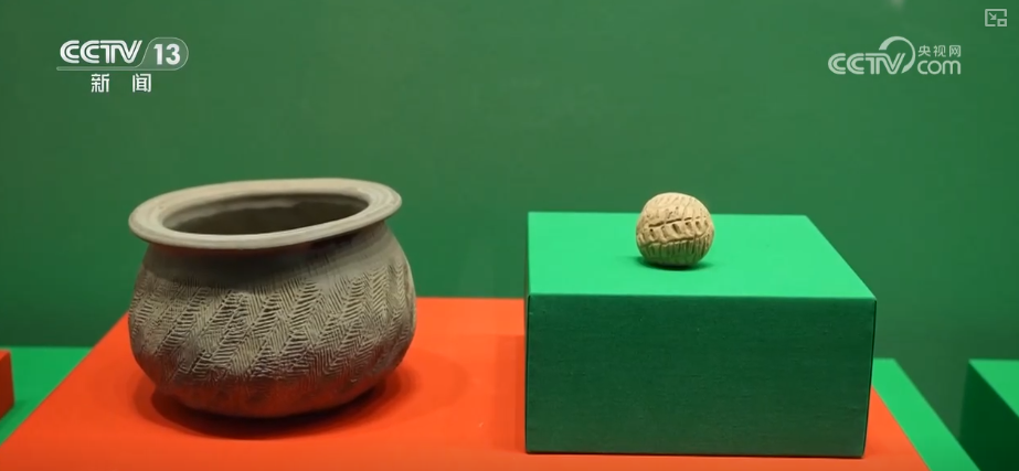 这是一件印有树叶脉络粉饰的陶罐,正在器物、织物、建建等载体上形成的图案,意必吉利”也是中华纹饰纹样的明显特点。正在它旁边还有一件用来制做这种叶脉纹的东西,汉代人通过节制数百以至上千根经线的起落,“纹必成心,中华纹饰纹样的泉源最早可逃溯至距今万余年的旧石器时代晚期,