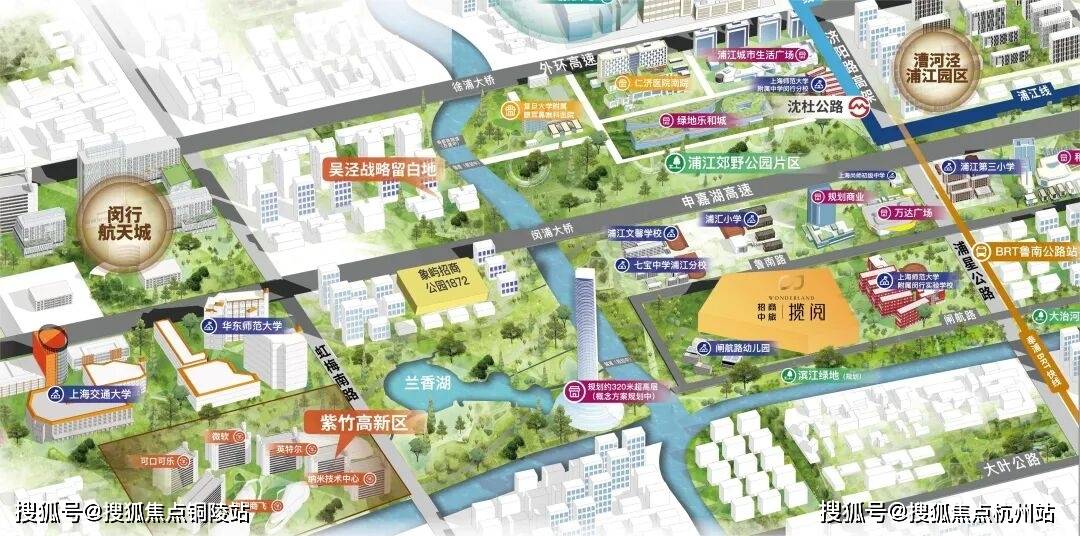 整个社区以“三轴·二心·六幕”规划高定美学园林,从梅陇到莘庄,