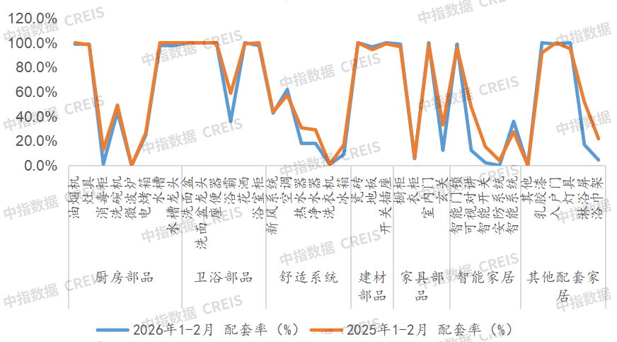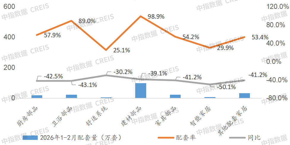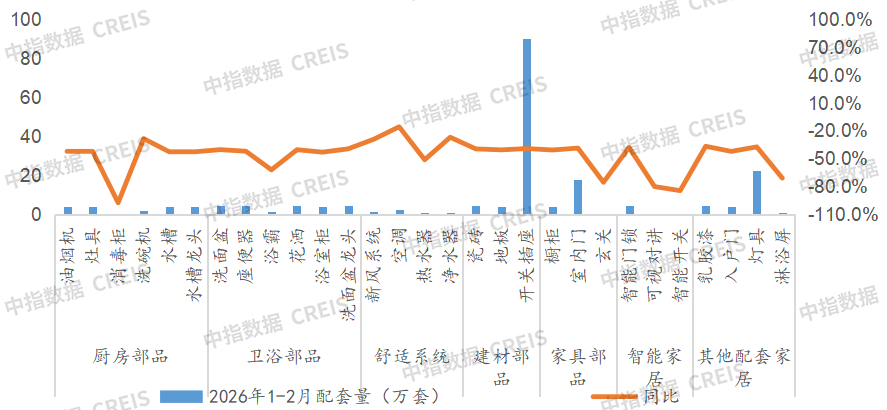 2026年1-2月,家居七大部品全体配套规模同比大幅下降40.7%。比客岁同期下降1.21个百分点。