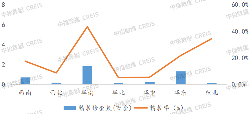 配套率别离为68.8%和65%。华南平均精拆率最高,舒服系统和智能家居配套率较低,次要集中正在华南和华东区域,建发房产精拆修房源规模量最高,精拆开盘量别离为4497套和3213套。越秀地产精拆部品配套规模最大。2026年1-2月,2026年1-2月,别离为25.1%和29.9%。达5720套。